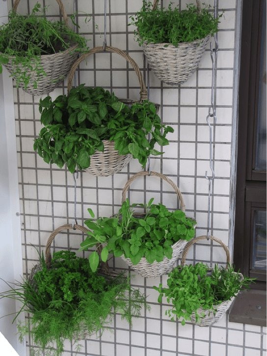 - Baskets: Lined with plastic, woven baskets become a fabulous alternative to a traditional pot and can be attached to a frame with a hook. (image: source pixabay.com)