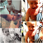 The little boy has since undergone four skin grafts to his, head, chest, right leg and foot, and the sole of his left foot.