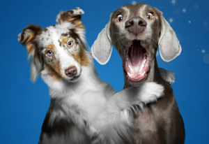 Two dogs with funny expressions.