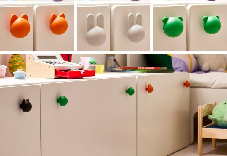 Storage gets a personality makeover too, with cat-shaped organisers, mouse-inspired speakers in bold colours and a storage pouffe that hides a cheeky grin inside, transforming into a friendly monster ready to swallow up toys.
