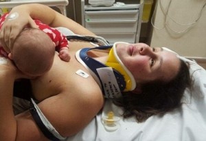 mum on stretcher feeding mf - Mouths of Mums