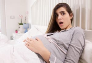 Beautiful pregnant woman feeling contractions