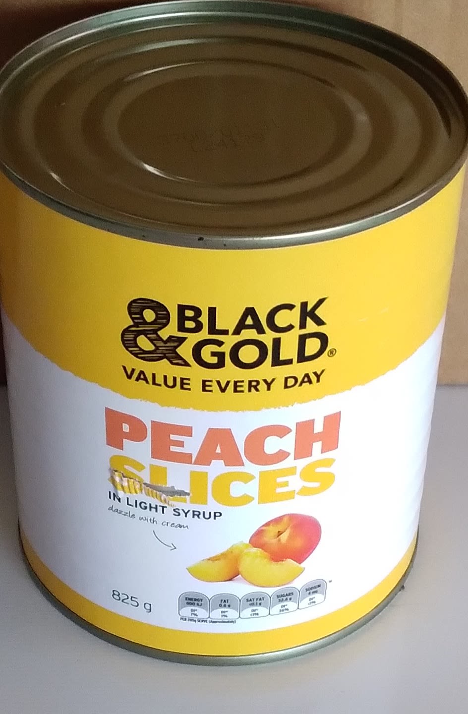 Rate It Black & Gold Peach Slices in Light Syrup 825 Gram