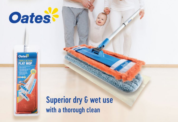 The Oates Triple Action Flat Mop sweeps, mops and dries floors with ease, all this with one compact unit. What floor surfaces is the Oates Triple Action...