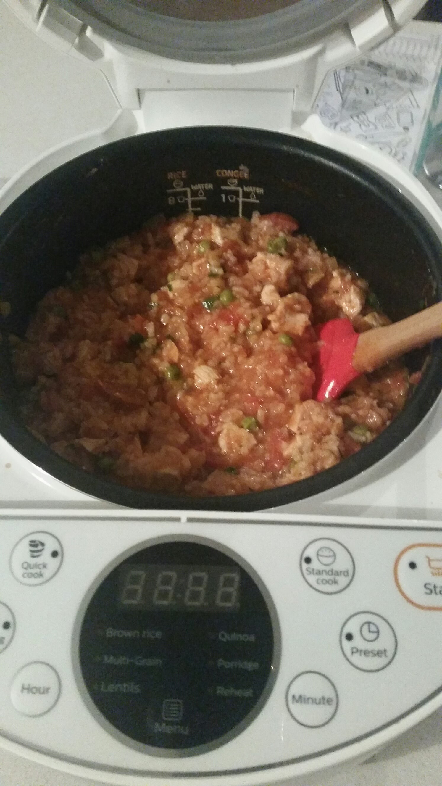 I’ve never had a rice cooker with a reheat function before and I had precooked cous cous that I needed to reheat (which also had chicken and vegetables in it). Although the instructions don’t mention cous cous I thought I’d just try the reheat function anyway.